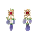 crafted in 92.5 Silver with a captivating blend of Yellow gold and Victorian polish, these earrings feature a brilliant Moissanite polki surrounded by a halo of shimmering moissanite stones. The delicate pearl drop adds timeless charm to these earrings.